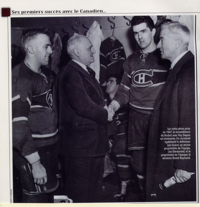 Photo prise en 1947 avec Léo Dandurand, Maurice Richard et le Sénateur