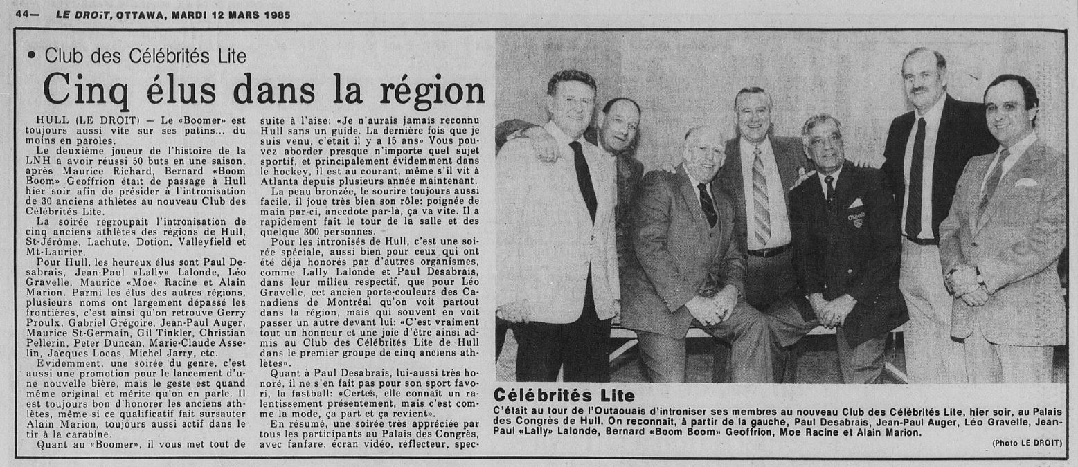 Il fut une gloire nationale - article de la Gazette de Maniwaki- 1974